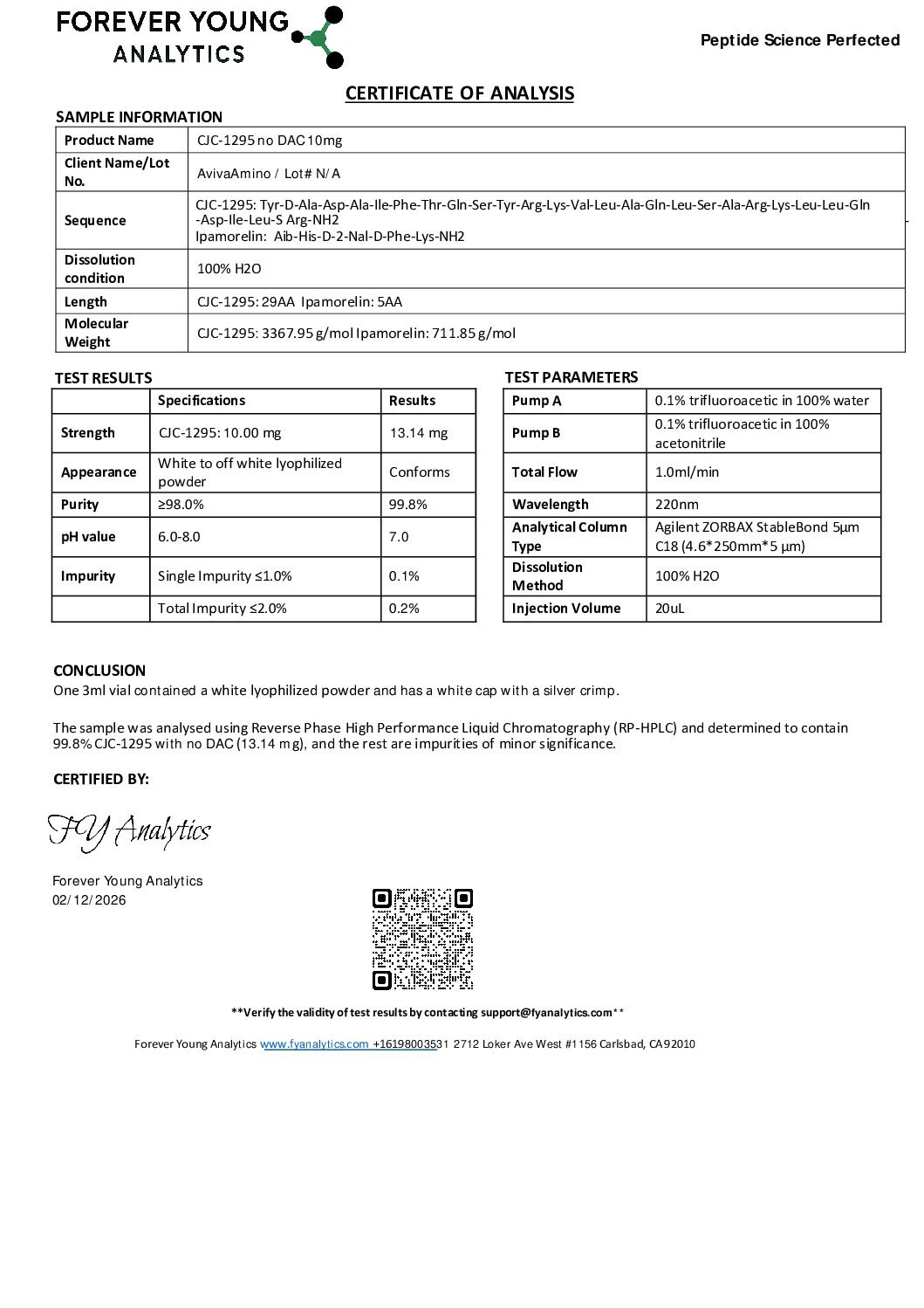 AvivaAmino is pleased to offer this product exclusively for research and laboratory use, provided in a lyophilized (freeze-dried) powder form to ensure its stability and integrity. It is important to understand that, in line with regulatory standards, we are unable to provide specific dosing instructions or reconstitution guidelines.